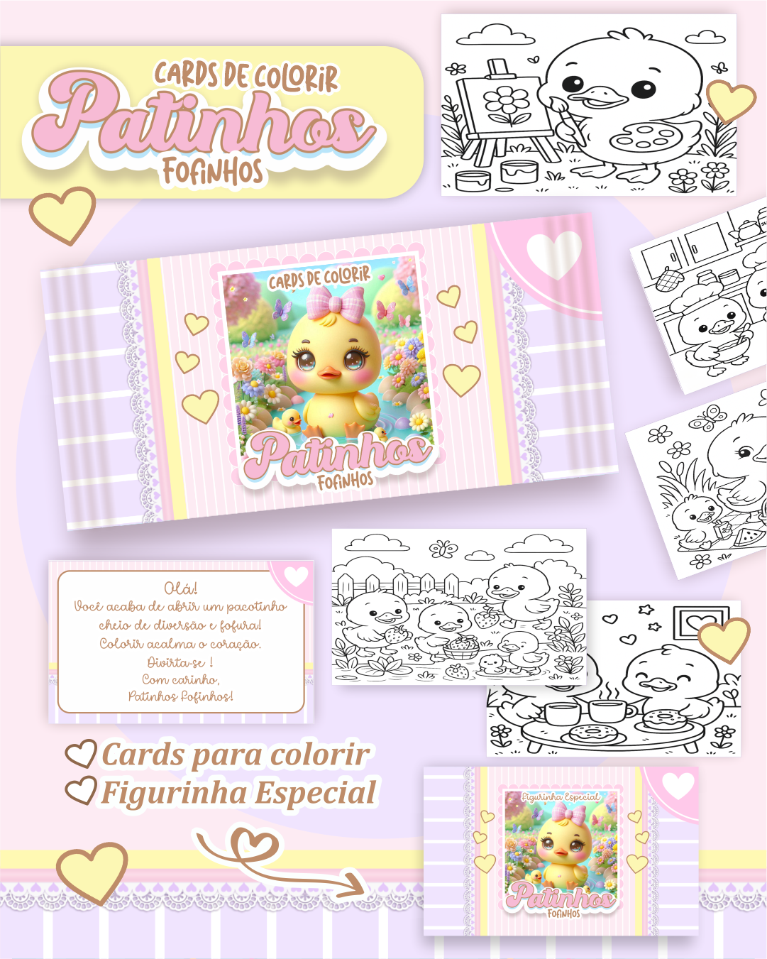 Embalagem, cards (desenhos) e figurinha